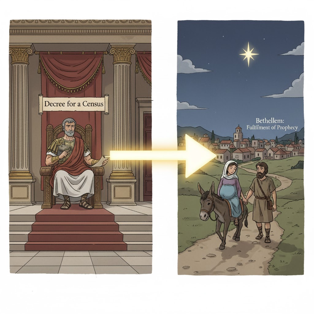 - 👑 황제의 명령을 사용하신 하나님: 하나님께서는 **세상에서 가장 강력했던 로마 황제(가이사 아구스도)**의 호적 등록 명령을 가장 낮은 곳에 있는 목수 요셉을 베들레헴으로 옮기는 **'완벽한 도구'**로 사용하신 거예요!