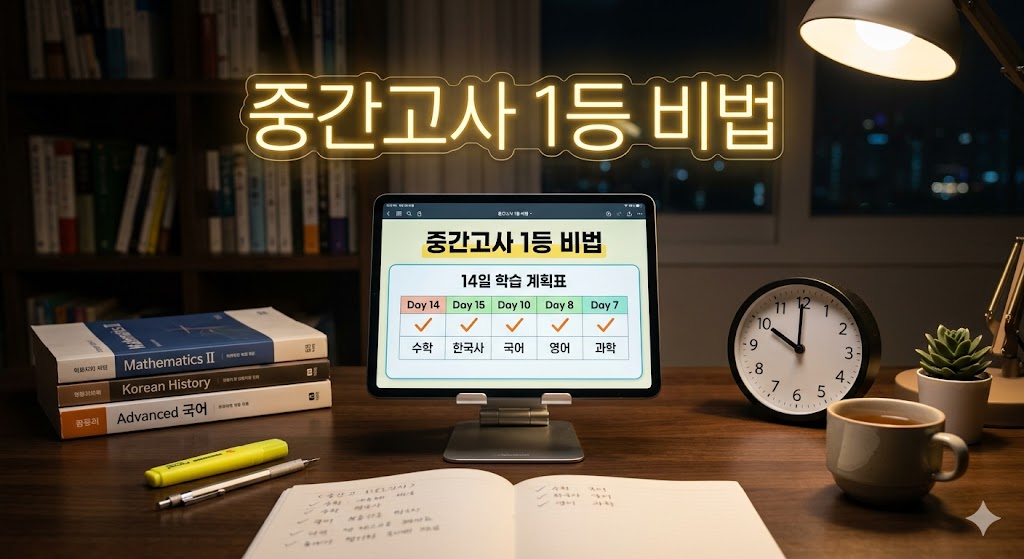 중간고사는 단순히 점수를 매기는 과정이 아니라, 목표를 세우고 끝까지 밀어붙이는 '인내'를 배우는 과정입니다. 오늘 알려드린 14일 플랜을 믿고 지금 바로 책상 앞에 앉으세요. 2주 뒤, 성적표를 보며 환하게 웃고 있을 여러분의 모습을 응원합니다!